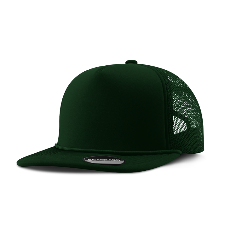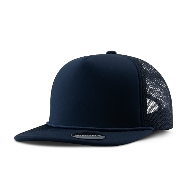 • 5-Panel Foam Cap • Structured • Flat Visor, 8-Row Stitching • Snapback Closure • High profile • Crown: 4″ high • One size fits most (6 5/8 – 7 5/8) • Fabric: 100% Polyester